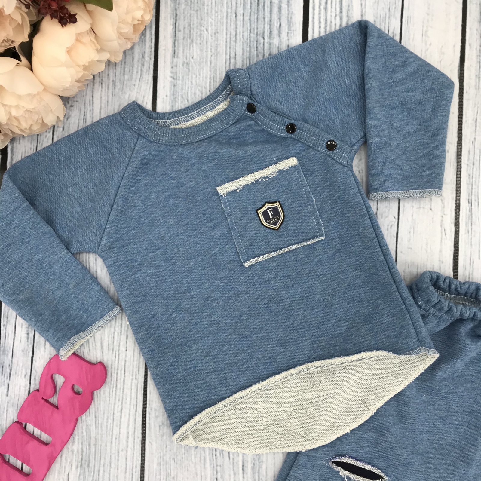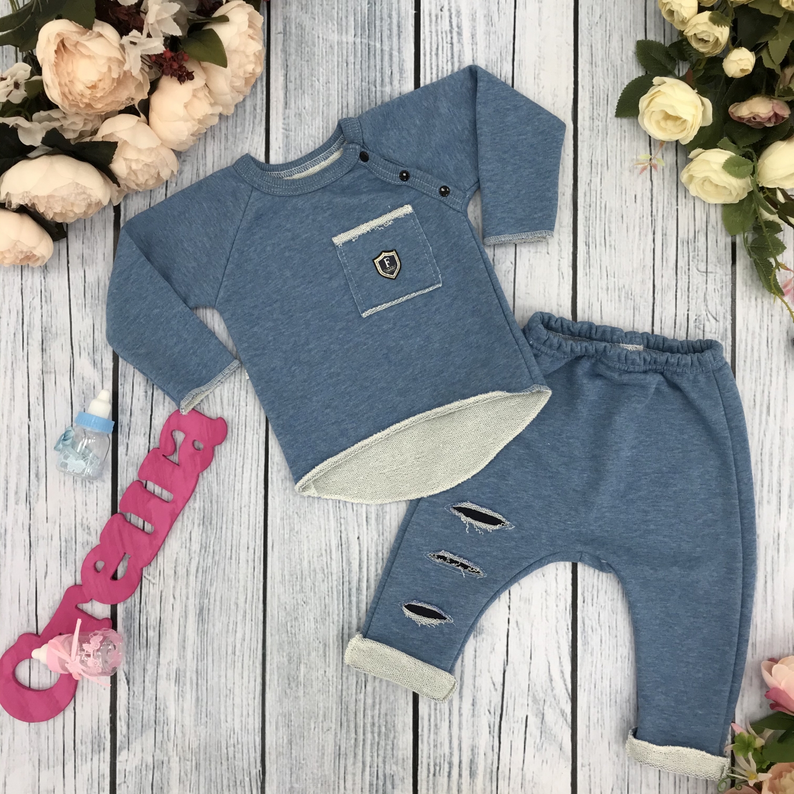 Купить оптом 239. Костюм ясельный, хлопок 65%, 35% ПЭ, 3-х нитка футер без начеса, джинса 74,80,86 в Пензе