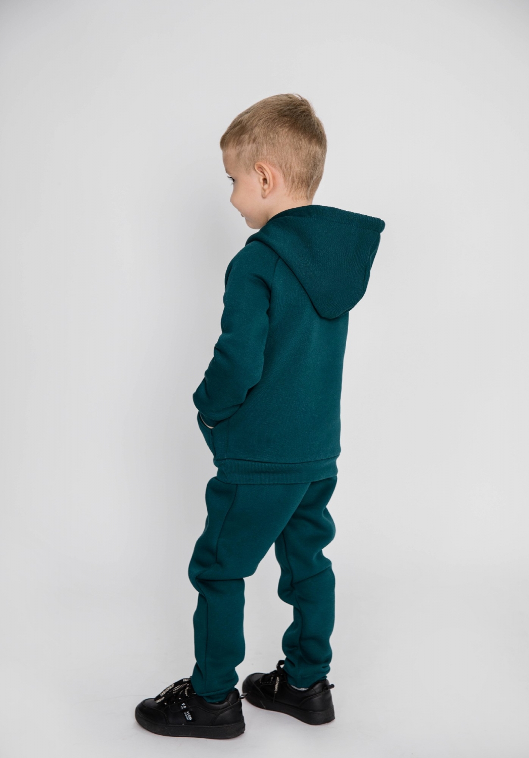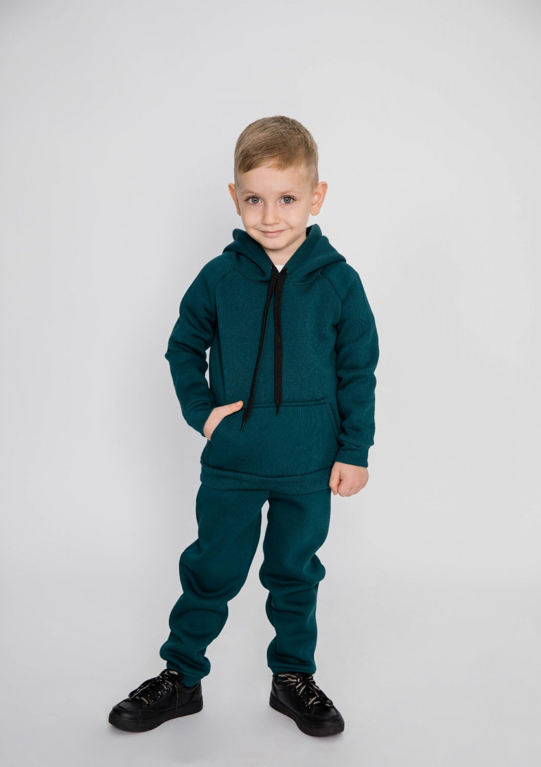 Купить оптом 296-И. Свитшот с капюшоном + Штаны, хлопок 65%, 35% ПЭ, 3-х нитка (начес) изумрудный 122,128,134,140 в Пензе