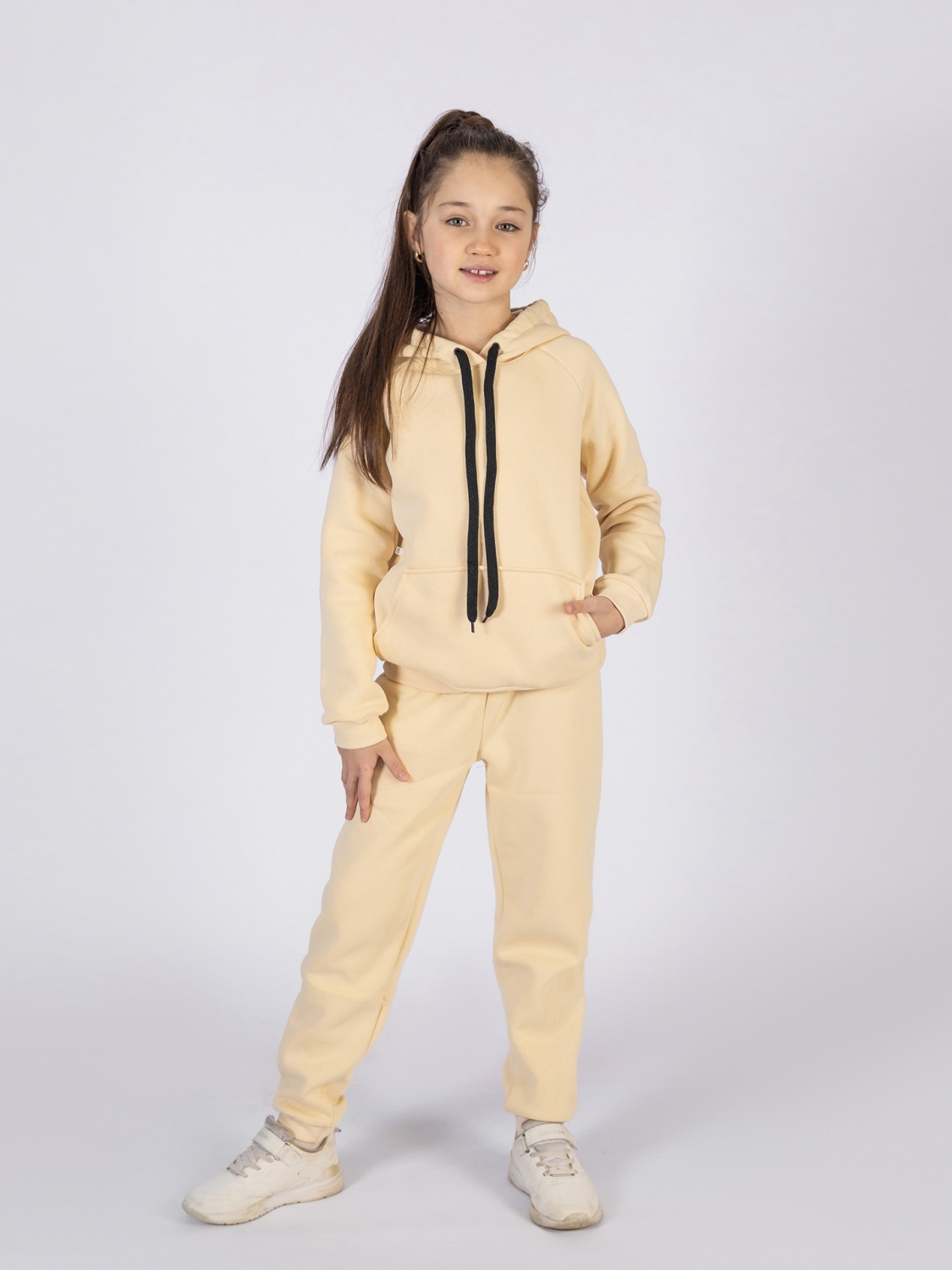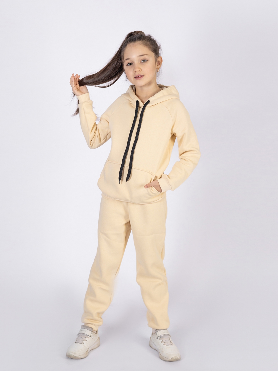 Купить оптом 296-СЛ. Свитшот с капюшоном + Штаны, хлопок 65%, 35% ПЭ, 3-х нитка (начес) сливочный 98,104,110,116 в Пензе