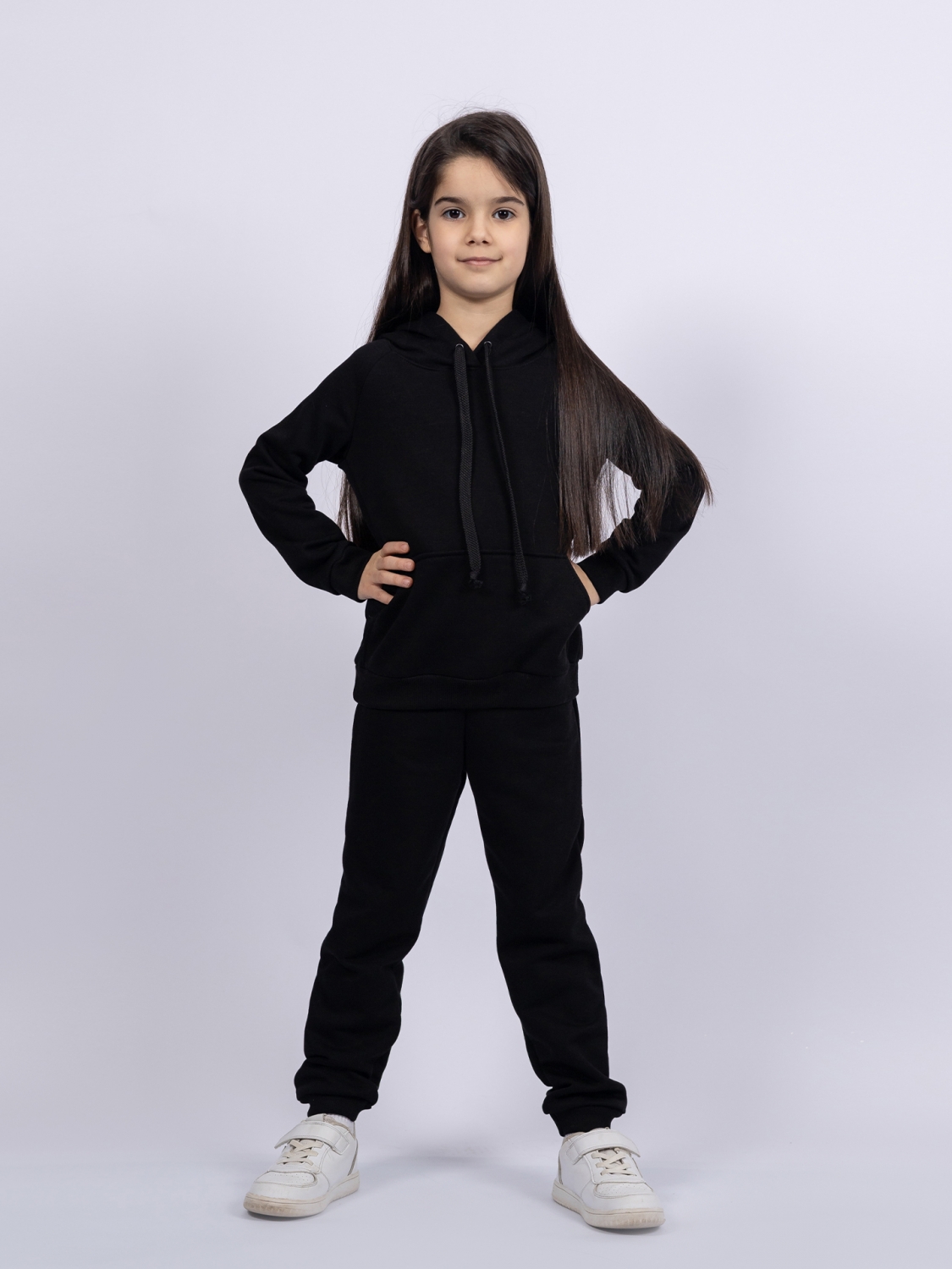 Купить оптом 311-Ч. Свитшот с капюшоном + Штаны, хлопок 65%, 35% ПЭ, 3-х нитка ( без начеса) черный 98,104,110,116 в Пензе