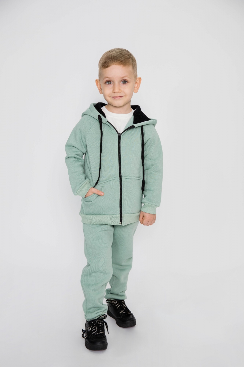 319-ОЛ. Костюм детский на молнии, олива, хлопок 65%, 35% ПЭ, 3-х нитка (начес) 98,104,110,116